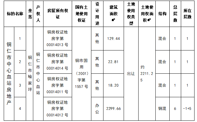 標(biāo)的名稱:銅仁市中心血站房地產(chǎn)