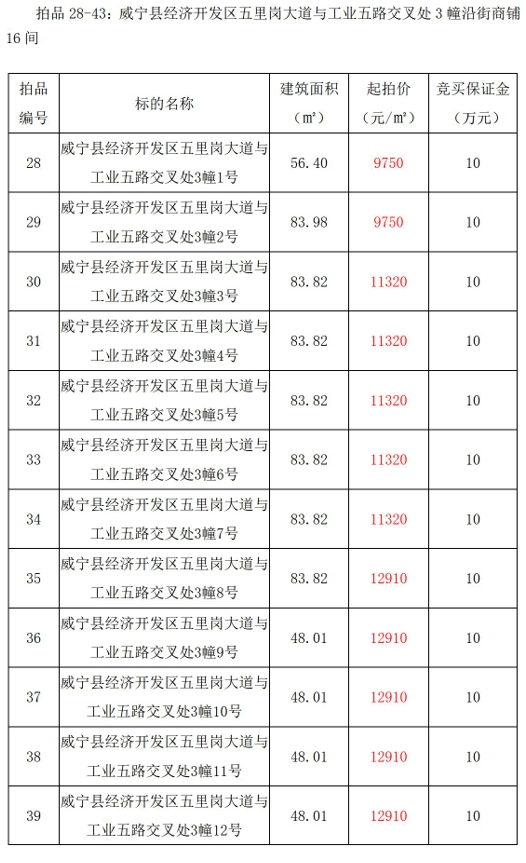 (一)威寧縣經(jīng)濟(jì)開(kāi)發(fā)區(qū)五里崗大道與工業(yè)五路交叉處公租房4幢沿街商鋪3間,建筑面積:65.44㎡-67.07㎡。