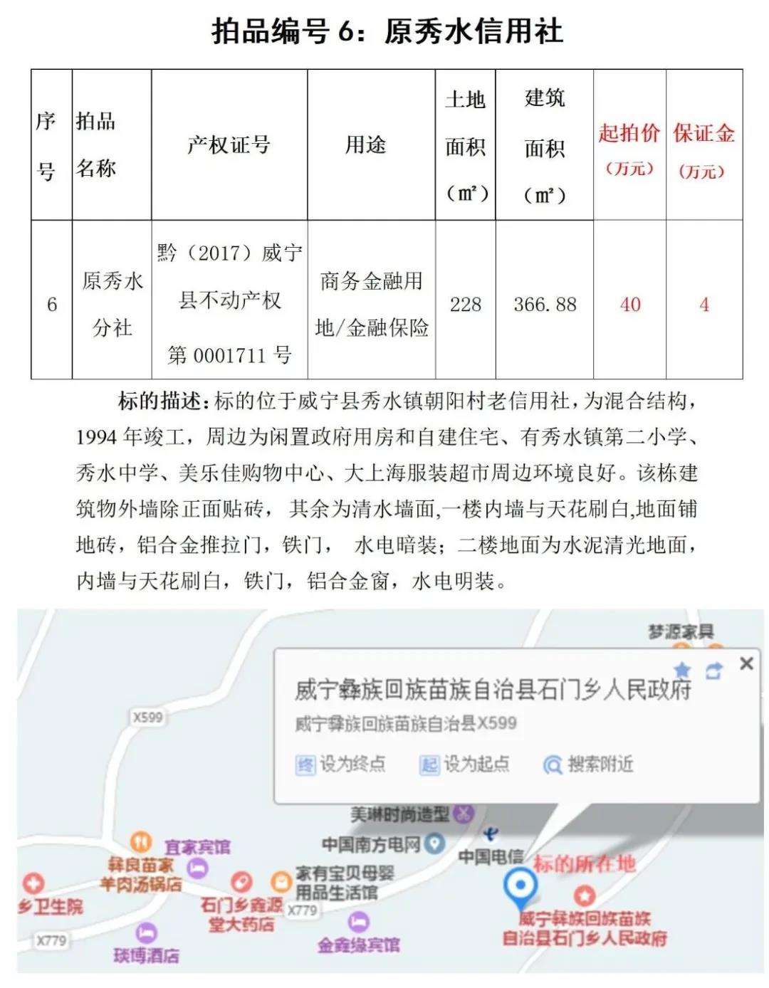 受委托,我公司定于2021年6月 4日(星期五)下午14:30于威寧縣濱海大道草海大酒店公開拍賣以下標(biāo)的: