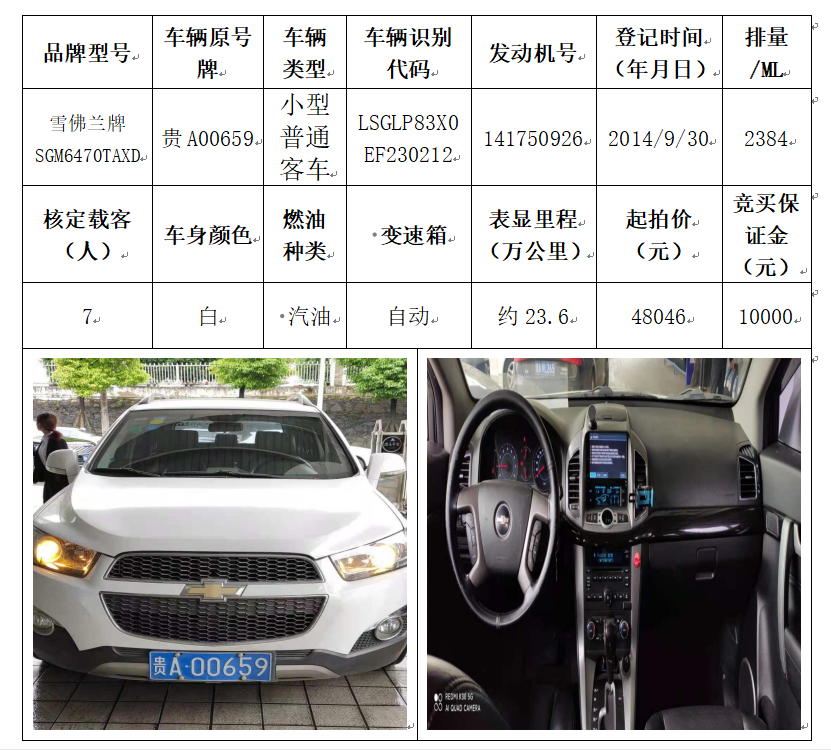 拍品編號4:別克牌SGM6527AT小型普通客車一輛