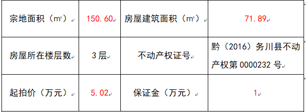 標的二:遵義市務川縣豐樂鎮(zhèn)豐樂村豐樂老街場上(農(nóng)行營業(yè)所)3-2號的住宅房地產(chǎn)