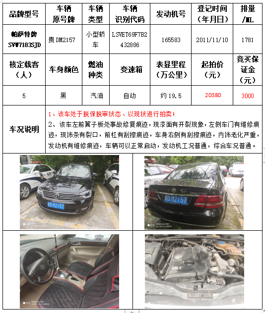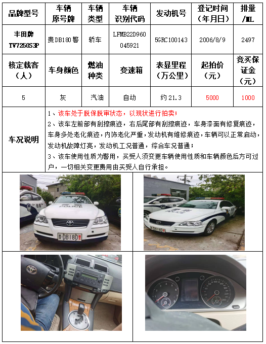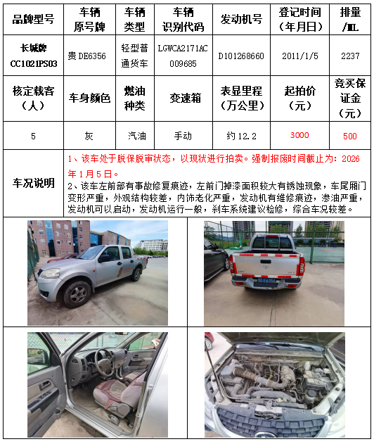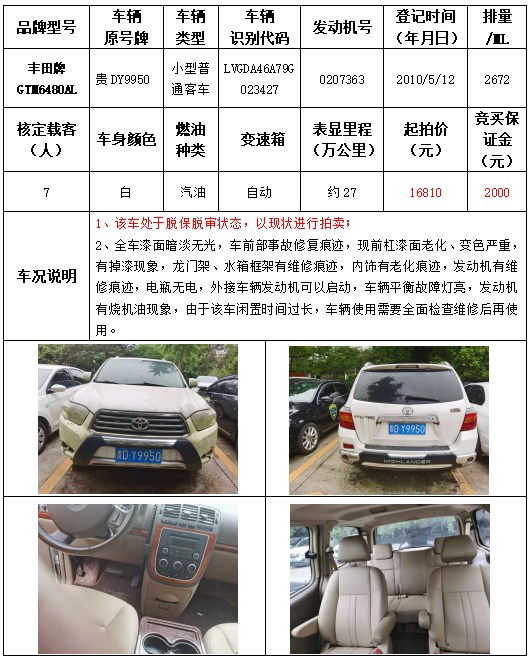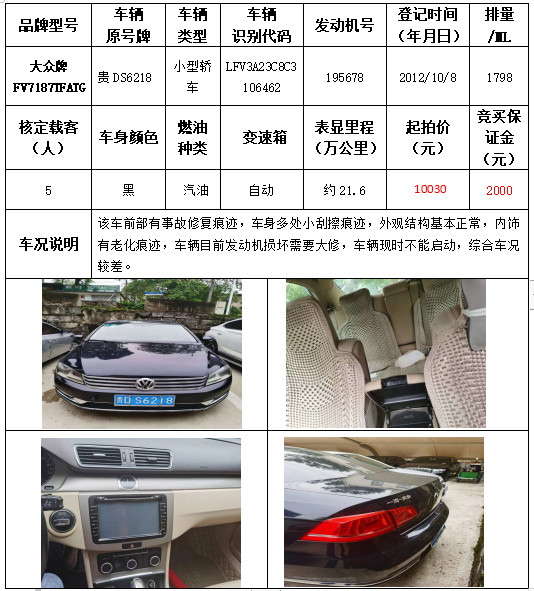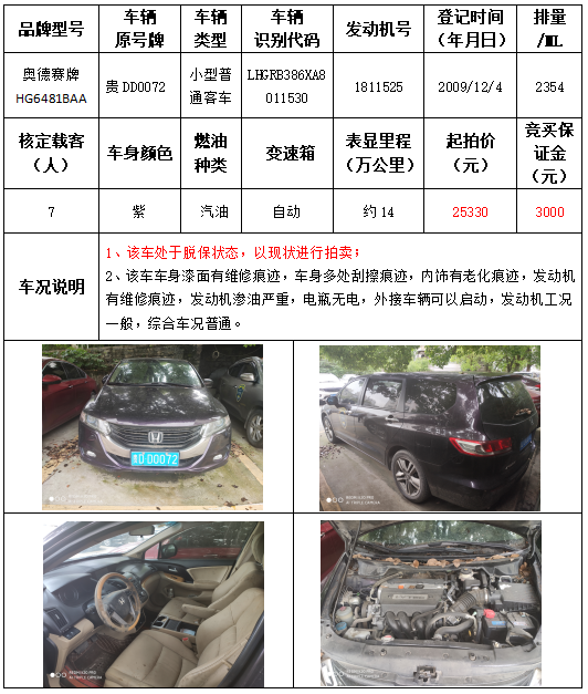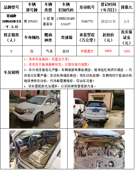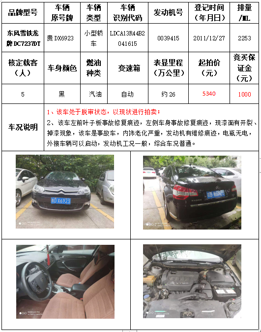 受委托,本公司定于2021年9月16日(星期四)下午14:30時(shí),在銅仁市碧江區(qū)川硐教育園區(qū)誠(chéng)信路銅仁市公共資源交易中心開標(biāo)六室(拍賣大廳)公開拍賣以下車輛: