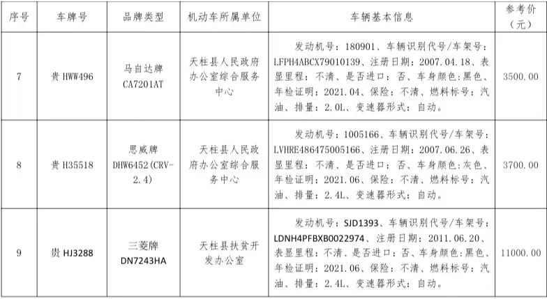二、受天柱縣人民政府辦公室綜合服務(wù)中心委托代為拍賣以下標(biāo)的,意向客戶可自行到原單位展示點查勘。