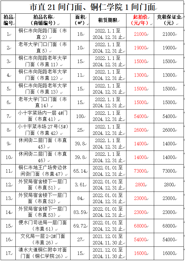 8、碧江區(qū)住房保障局樓下門面1間,面積:216.92㎡,租賃期:5年;