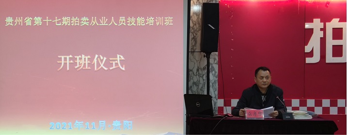 袁齊華會長主持開班儀式,介紹了貴州省拍賣行業(yè)的發(fā)展歷程、當(dāng)前形式情況,舉辦從業(yè)人員培訓(xùn)班的目的和意義。期望學(xué)員通過系統(tǒng)的拍賣理論知識學(xué)習(xí),在今后的實(shí)際工作中加以運(yùn)用,不斷的自我總結(jié)提高和創(chuàng)新,爭做新一代學(xué)習(xí)創(chuàng)新型拍賣人,為貴州拍賣事業(yè)作出新的貢獻(xiàn)。