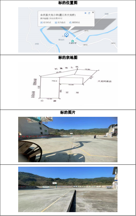 該標(biāo)的位于余慶縣白泥鎮(zhèn)大龍村村委會(huì),證載土地面積:759.6㎡,土地使用權(quán)性質(zhì):劃拔,證載用途:煙葉收購,土地證號(hào):余國用(2007)第891號(hào)。