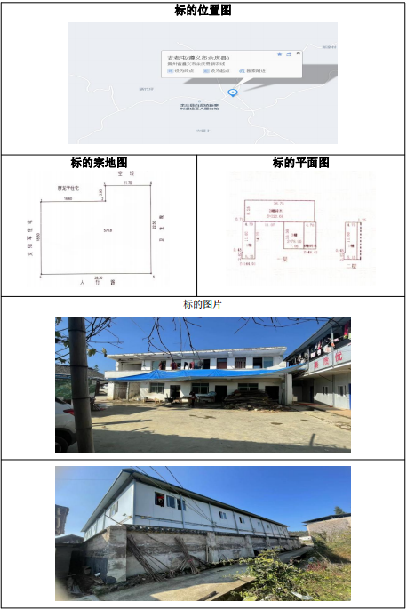該標(biāo)的位于余慶縣白泥鎮(zhèn)小腮街上,建筑面積:約1500㎡,土地面積:約1216.5㎡,資產(chǎn)無產(chǎn)權(quán)證。