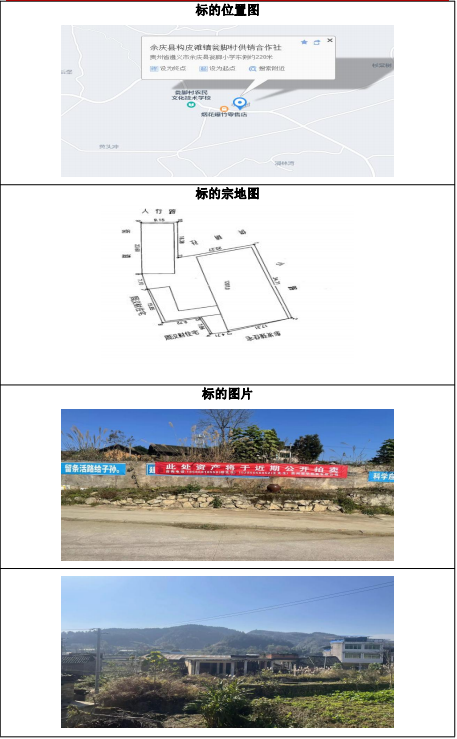 1、甕腳收購點土地:坐落于余慶縣構(gòu)皮灘鎮(zhèn)甕腳村;土地使用權性質(zhì):劃撥;證載土地使用權面積:1207㎡;起拍價:7.72萬元;保證金:1萬元;
