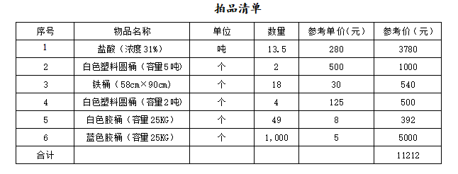 2、拍賣成交后買受人需要到標(biāo)的物所在地提取標(biāo)的物,買受人在提取和運(yùn)輸鹽酸時,須按照國家法律、法規(guī)、行政規(guī)章制度的相關(guān)標(biāo)準(zhǔn)進(jìn)行提貨和運(yùn)輸。提取和運(yùn)輸所有費(fèi)用由買受人自行承擔(dān)。
