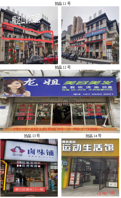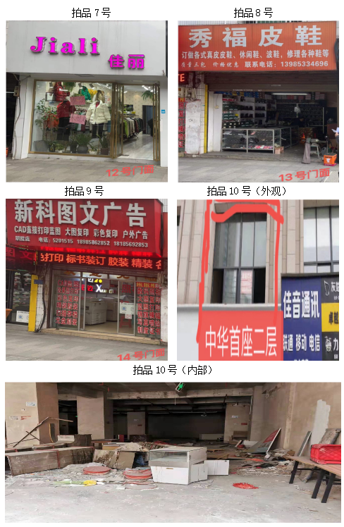 拍品1至9號(hào)標(biāo)的:位于清水大道銅仁農(nóng)校旁,地理位置優(yōu)越,屬于黃金大道。附近有大專、中學(xué)、小學(xué)、幼兒園等,教學(xué)配套齊全;擁有眾多小區(qū),人口流動(dòng)能力強(qiáng),固定人口較多;周圍有超市、商場(chǎng),人口流動(dòng)性強(qiáng)。地理位置優(yōu)越,屬于臨街門店,升值空間較大;地區(qū)基礎(chǔ)設(shè)施完善,公共交通、公共停車設(shè)施的增加,使該地升值空間進(jìn)一步增大;建筑結(jié)構(gòu):磚混,面積:13.3㎡至29.4㎡不等(具體面積見上表),租賃期3年(具體日期見上表),保養(yǎng)情況:較好。