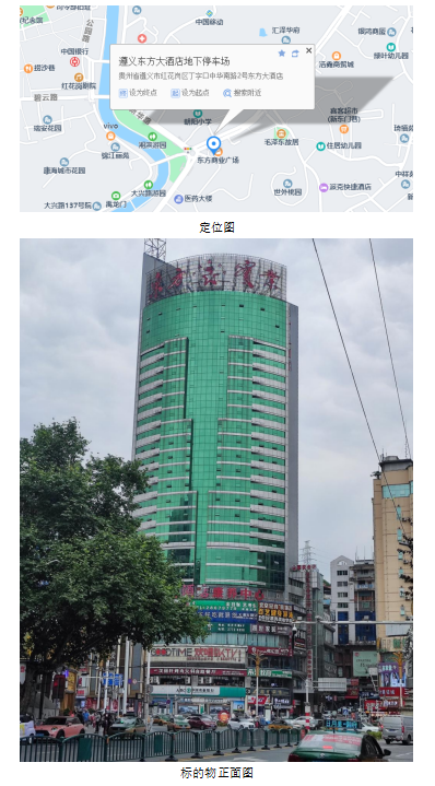 1、貴州省遵義市紅花崗區(qū)中華南路丁字口遵義大飯店主塔樓7層2號辦公用房(總建筑面積:375.23㎡)。