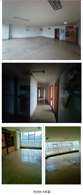 (2)房屋總層數(shù)為25層,該標(biāo)的所在層數(shù)為7層,證載房屋建筑面積為375.23㎡,標(biāo)的規(guī)劃用途為辦公用房,房屋建筑結(jié)構(gòu)為鋼混,目前為閑置狀態(tài)。