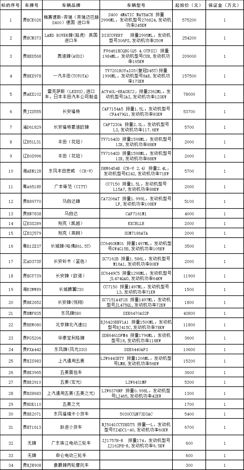 受委托,我公司將于2022年8月18日9:10在貴州省黔東南州公共資源交易中心及中拍平臺采用網(wǎng)絡(luò)與現(xiàn)場同步競價方式公開拍賣奔馳邁巴赫S400、路虎發(fā)現(xiàn)、奧迪Q5、皇冠、雷克薩斯等涉案車輛34輛(可憑裁定書自行辦理過戶)。