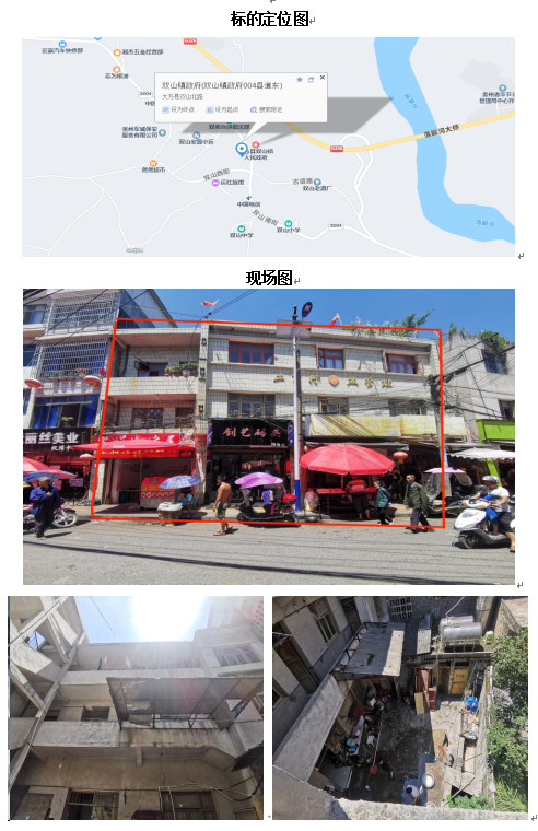 1、該標的位于大方縣百納鄉(xiāng)政府旁,建成于2003年,占地面積264.9㎡。共四層,分為前后兩棟。前棟:一層為門面2間,面積合計76.83㎡,現(xiàn)為閑置狀態(tài);二、三層面積分別為116.7㎡;四層面積為56.05㎡;前棟面積共計366.28㎡。后棟:半地下層在鄉(xiāng)政府院內,面積為38.9㎡;一、二層面積分別為137.43㎡;三層面積為95.73㎡;后棟面積共計409.48㎡。前后兩棟建筑面積共計為775.77㎡。